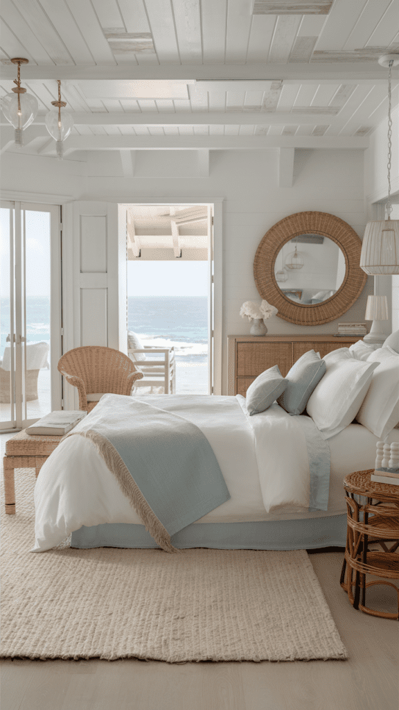 Furniture in coastal bedrooms should be functional yet stylish. Driftwood, rattan, and reclaimed wood pieces are popular for their rustic charm and connection to nature.