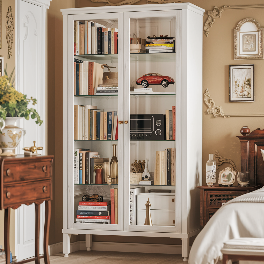 Install tall shelves or a bookcase that reaches the ceiling.