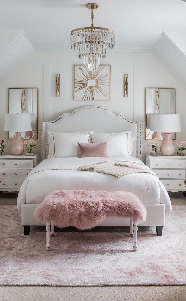 Hang a large mirror above your bed or create a gallery wall of smaller mirrors.