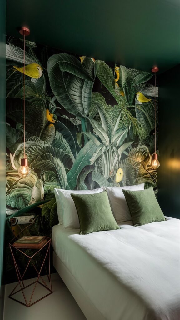 Choose a vibrant pattern for an accent wall behind your bed.